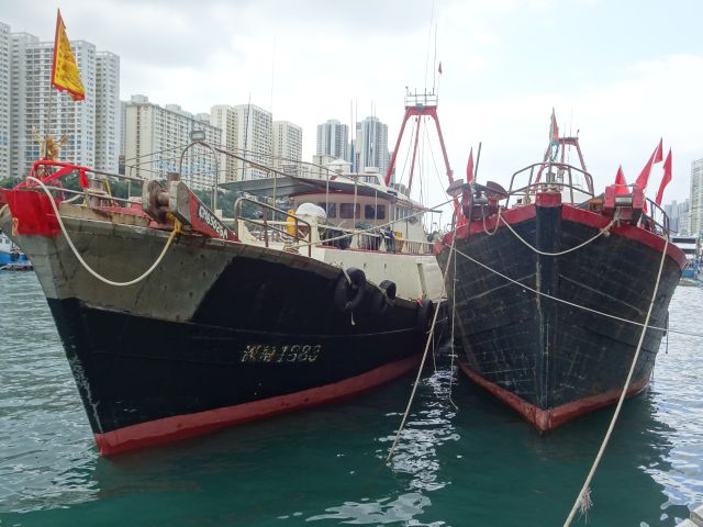 Sampan tour passing Aberdeen's fishing fleet