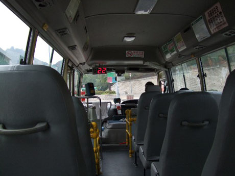 Travelling to the final destination of the minibus or disembarking at an intermediate stop where other passengers are disembarking is no problem for visitors. However the majority of buses have no bells (although bells or buzzers are being introduced on some new and existing buses on certain routes). Passengers need to attract the drivers attention when wishing to disembark at the next stop and need to shout out to the driver. If sat at the back of a noisy minibus it can sometimes be difficult to be heard and for passengers without a loud voice or who may be embarrassed by shouting are advised to try and sit near the driver. Most drivers do not speak English but usually do understand English commands such as "next stop please" and it is not necessary to communicate with driver in Cantonese. Shouting just about anything will indicate to the driver you want him to stop and most drivers will usually acknowledge requests to stop with an arm motion. If waiting to board a bus at an intermediate stop and the bus is full the driver will usually give a hand signal to waiting passengers and not stop. However, most green minibus services are frequent and waiting passengers can normally expect the next bus to be not too far behind.