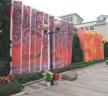 NATURE GARDEN – the Nature Garden, adjacent to Noah’s Ark and accessed by a separate entrance, is intended to be “an art piece for enjoyment, to stimulate inner reflection, and inspire and appreciation for the loving relationships in the beauty of nature”. It contains a “Rainbow Wall” with seven panels each in one of the rainbow colours designed for visitors to “reflect on, imagine and participate in the process of creation”, themed gardens, river, ponds, forest, playground, windmill station, hilltop lookout with "big bird ready to flutter and soar" and with panoramic views of the Kap Shui Mun Bridge.