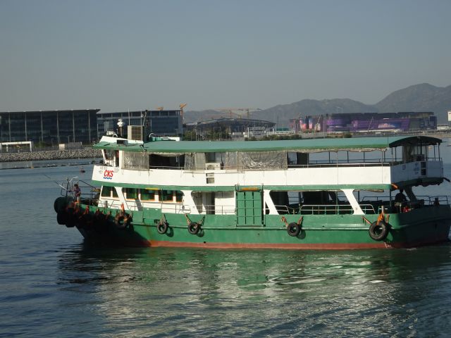 Operated by Peng Chau Kaito, the weekday service has been reduced to a school day only service with one service in each direction leaving Mui Wo at 7-20am and Discovery Bay at 3-10pm and calling at Peng Chau in both directions. The journey takes about 25 minutes. On Saturdays, Sundays and public holidays there are up to eight each-way journeys, all direct between Mui Wo and Discovery Bay (service does not call at Peng Chau) with a journey time of about 20 minutes. Fare HK$12 Monday to Saturday, HK$15 Sundays and public holidays, child under one free. A sectional fare of HK$5.5 applies for the school day service between Peng Chau and Discovery Bay.