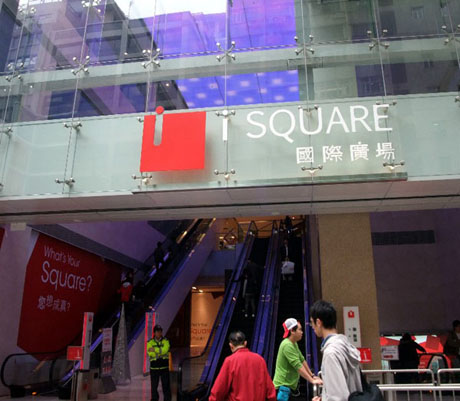 iSQUARE, opened 16th December 2009 was developed by Associated International Hotels Limited and is a distinctive major 31-storey vertical “boutique mall” with twelve-storey podium, cinema box and tower. The mall features mid to high end retail stores including designer fashion, lifestyle and beauty shops, watches and jewellery, audio-visual, restaurants and on the seventh-floor 1000-seat IMAX cinemas including a 3-D theatre. Unlike most vertical malls the design of iSQUARE gives it a light, airy and spacious feel and the mall’s towering glass curtain walls allow panoramic views over Kowloon. Some floors are linked by express lifts missing out intermediate floors. Not all units are yet occupied and shops currently open include Crocodile, Ice Fire, Lacoste, Bossinistyle, Moiselle, Bess, Tshirt Store, Byford, Wenger, Bruuns Bazzar, Futbol Trend, Diane Freis, Lenscrafters, City Chain, Clarks, Mango, Tissot, MaBelle, Seiko Boutique, Chow Tai Fook, Isabella and G-TOX Concept Store. Broadway, Bose, Ninki Denki, New Balance, Rouge Amour, Sabatina and Diane Freis. On Lower Ground Floor is a Marketplace by Jasons supermarket. Restaurants including fine dining include Ambrosia Oyster Bar & Grill, Golden Palace Seaview Banquet Hall, Jiang Shun Fresh Water Seafood, Star of Canton, Chao Yang, Myung Ga Korean Restaurant, Sushi Nagoyaka Tei, Romankan Yokohama, Café Key West, Gyu Jin Shabushabu & Sukiyaki and Budaoweng Hotpot Cuisine.