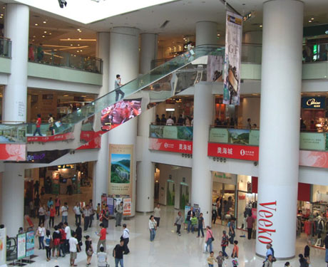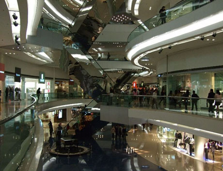 Festival Walk which opened in 1998 is a large and attractive mall owned and managed by Swire Properties who were a partner in development of the mall. It is located above a major rail interchange and has an excellent range of about 200 mostly mid to up-market shops, café’s and restaurants, supermarket, cinema and ice rink. A sky lit atrium and attractive decor makes this hugely popular mall a bright, airy and pleasant place for both shopping and entertainment. There are six levels of retail shops offering ladies, men’s and children’s fashion, casual wear, sports wear and equipment, jewellery and watches, accessories, toys, beauty and personal care, books and gifts, furniture and house wares, audio/visual and electrical appliances. On 29th September 2012, Festival Walk became home to Hong Kong's second Apple Store, a year after the city's first Apple Store opened in IFC Mall. Other major stores include Marks & Spencer, H & M, LOG-ON, Page One Bookstore, Toys’R Us, Royal Sporting House, Esprit, Fortress, Broadway, Hong Kong Records, Christian Dior, Clinique, Estee Lauder, Swarovski, Calvin Klein, Escada, Mango, Vivienne Tam, Vivienne Westwood, Fila, Levi’s, Coach, Bang & Olufsen, MaBelle, Adidas, Marathon Sports and DKNY. There is a large Taste Supermarket at MTR level and level 2 has a large FoodFest food court with a variety of fast-food outlets including KFC, McDonalds, Noodle Place, Patong Thai and Yoshinoya. There is also a good selection of coffee bars, café’s and Asian and Western restaurants on other levels including Pacific Coffee, Starbucks, Oliver’s Super Sandwiches, Amaroni’s Little Italy, Dan Ryans Chicago Grill, The Spaghetti House, Festive China, House of Canton, Ichikawa, Red Lily and Sesson Kushiyaki. The eleven-screen multiplex AMC Cinema is at upper ground level and Glacier Ice Rink on upper ground level is Hong Kong’s largest and has theatrical lighting, plasma TV screens and high-quality audio system. There is a skate shop Inside Edge attached to the rink selling skates and equipment and restaurant EXP. There is ringside seating and there are viewing balconies around the FoodFest food court above. For shops directory and floor plan see Festival Walk website.