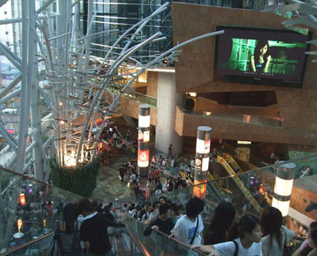 Situated in a prominent location in north-east Kowloon close to the entrance to Tate’s Cairn Tunnel Plaza Hollywood is owned by The Wharf Holdings who also own Times Square and Harbour City. The mall which is directly above Diamond Hill MTR Station has around 170 shops, department store, supermarket and about 20 food outlets on four levels around a large central atrium with giant video screen and also houses a cinema. The mall’s “anchor store” is Marks & Spencer Department Store on level 1 and there is a large Park’N Shop Supermarket on level 2. A wide variety of mostly mid-range shops offer fashion, stationery, books and gifts, health, beauty and pharmacy products, toys and hobbies, jewellery and watches, audio/visual and electrical appliances, children’s wear, art, home furnishings, sports wear and equipment, music, leather goods and shoes and telecommunications products. Shops include Arnold Palmer, Bauhaus, Baleno, Bossini, Giordano, G2000, Levi’s, IP Zone, Samuel & Kevin, Snoopy, Crabtree & Evelyn, Fancl House, Ingrid Millet Paris, O’Berry Australian Products, The Body Shop, Yves Rocher France, Chow Sang Sang Jewellery, City Chain, MaBelle, CD Warehouse, Broadway, CMK Electrical Store, Fortress, Gome, Hang Cheong Furniture, Jade Rattan Ware, Adidas, Columbia, Marathon Sports, Royal Sporting House, Dr Kong, FX Creations, Maud Frizon Paris, Staccato and Walker Shop. Cafes/restaurants include Double Star Café, Hachiban Ramen, KFC, McDonald’s, Pizza Hut, Saint’s Alp Teahouse, Thai House and Wansu Korean Kitchen. There is a Jumpin’ Gym USA on ground level and Golden Harvest’s six-screen multiplex GH Hollywood cinema is on level 4. The atrium is often a venue for prestigious exhibitions.