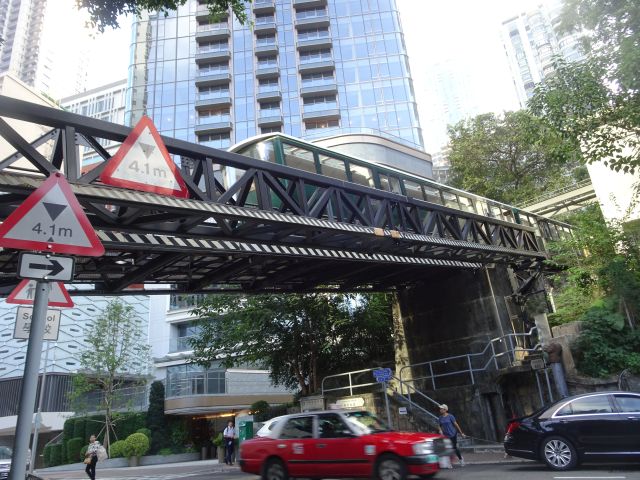 6th Generation Peak Tram emerging from the bridge under Kennedy Road