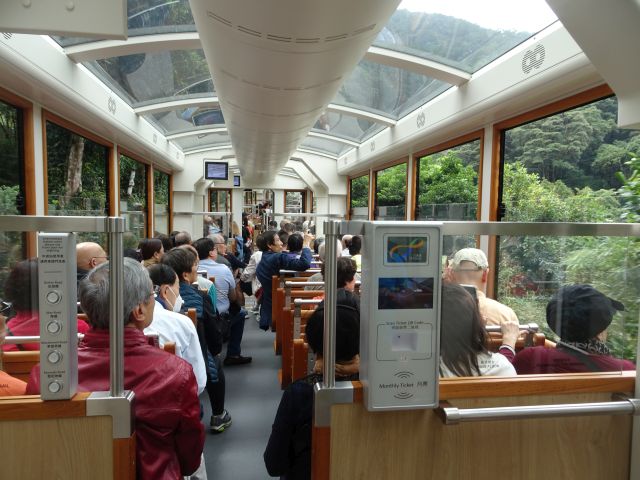 6th Generation Peak Tram beginning the descent from the Upper Terminus platform, Peak Tower
