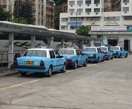Lantau Blue Toyota Comfort LPG Taxis at Mui Wo Ferry Pier Public Transport Interchange